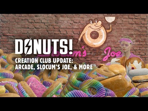 Donuts! Creation Club Update: Slocum's Joe & Arcade Workshop Packs, New Power Armor Paint, & More - Slocums Joe - Subscribe!: http://oxhorn.it/youtube-subscribe-to-oxhorn Support on Patreon: https://www.patreon.com/oxhorn Get an Oxhorn T-shirt: http://oxhorn.it/oxhorn-shirts ...